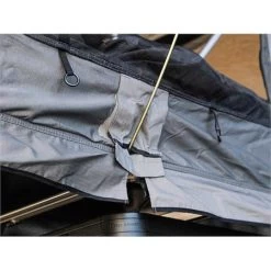 - The side window privacy panels zip upwards to close, so that the size of the opening can be adjusted according to privacy needs or weather conditions.