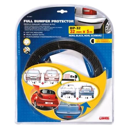 Soft PVC moulding. Remains soft even at cold temperatures. Suitable for all painted or metal bumpers. Can be cut into 2 o 4 sections. Special 3M adhesive tape for a secure and long-lasting grip.