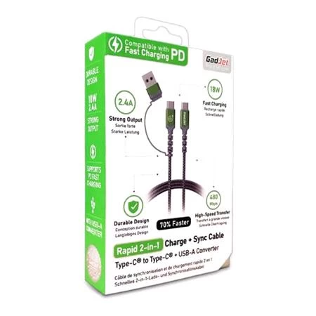 Gadjet Rapid 2 – In – 1 Charge And Sync 2.4a Type – C To Type – C Cable – 1.2 Meter