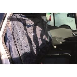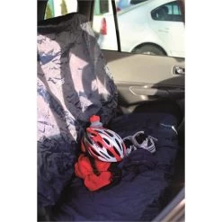 Waterproof nylon rear seat cover (large) with Velcro slots for headrests and seat belts, blue coloured with Laser logo
