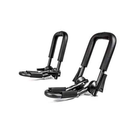 The Menabo Nigara carries your canoe on its side, which saves space on your roof rack. The padded arms are adjustable and can be folded down when not in use. Three sets of tie down straps are provided so you can be assured that your boat is secured. The carrier fits virtually al roof bars with a maximum width of 75mm. If your roof bars have a T-Track, a range of Tbolts are supplied so you can mount the Nigara to these as well.