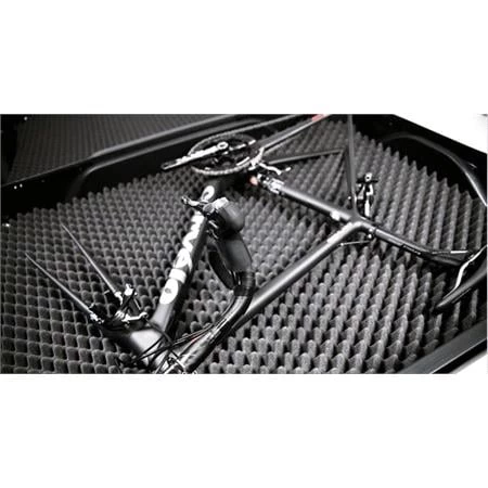 The case dimensions (height 128 cm – depth 35 cm – width 98 cm) have been assessed in order that the bike can be transported disassembling just the wheels (to place in dedicated bags) and the pedals, in order to not interfere with the pre-adjusted gear of the cyclist.