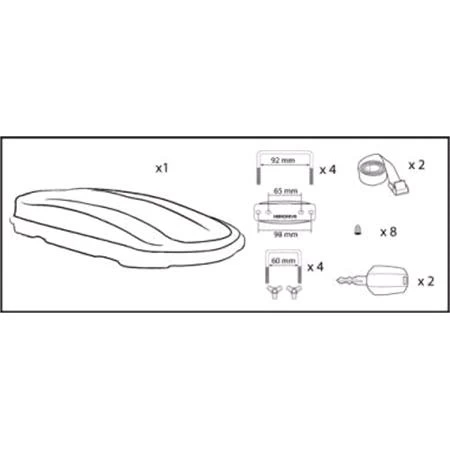 – Easy fitting system to roof bars: double set of “U” hooks (4×60 mm + 4×92 mm).