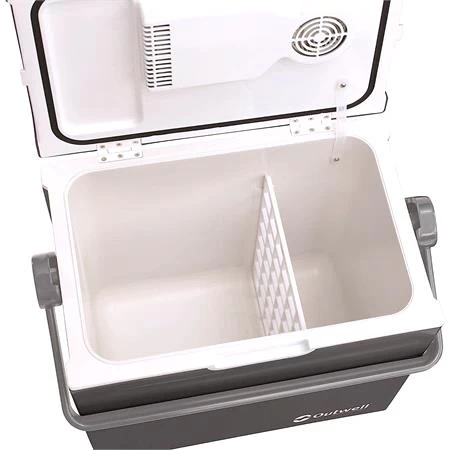 The Outwell ECO Prime slate grey coolbox can be powered via 12V or 230V Uk mains plug, it uses the latest energy saving technology to efficiently chill your food or drinks. The cooler is PU insulated for an enhanced performance and can be used to cool or warm your goods by simple flick of a switch. The ECOprime 24L comes with a split lid to minimise loss of cooling and to provide quicker access to your chilled goods. Designed for the European ECO legislation the ECO prime 24L coolbox keep contents approx 18 degrees below the outside temperature, highly efficient sound suppression and is suitable for holding 1.75L bottles and is indispensable for picnics and camping trips.