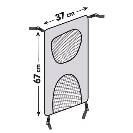 • Installation at the back of front seats, and secured to headrests and seat base through buckles.