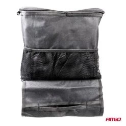 Thermal bag closed with a double zipper. Fastening to the headrest with a strap with a snap, which can also be used as a bag handle.