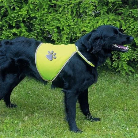 This safety vest is the ideal solution to your worries about pet dogs running in the dark, providing more safety for both people and animals. The vest has reflective piping and paw prints and is neon yellow, made from durable polyester. The vest is extra easy and quick to put on due to velcro, and fully adjustable at the stomach and neck. Machine washable at 30 degrees. Due to its durable but minimalist design, the vest will not interfere with most standard collars or leashes, making it an easy safety addition for walks in the dark with your dog!